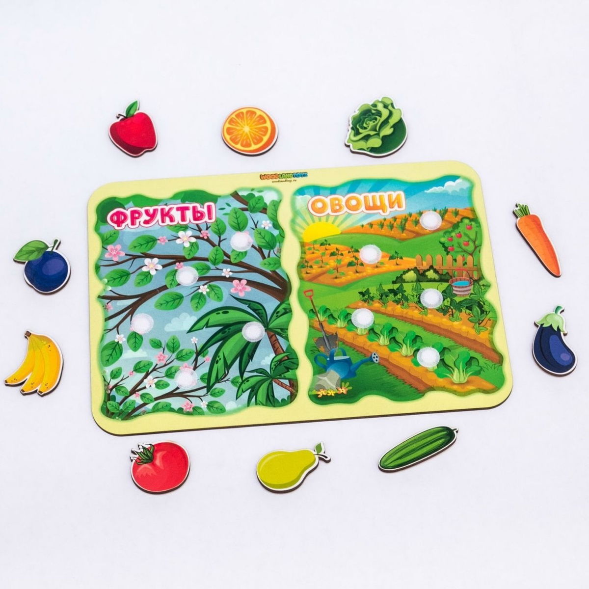 Развивающая игрушка Woodlandtoys Обучающий набор Фрукты-овощи, 117203