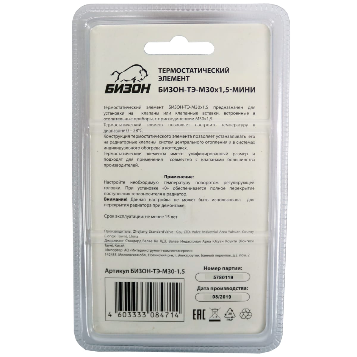 • Состав комплекта Термостатический элемент, упаковка