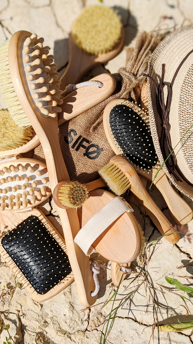 SIFO Квадратная расческа для мокрых волос из карельской березы с пластиковыми зубчиками