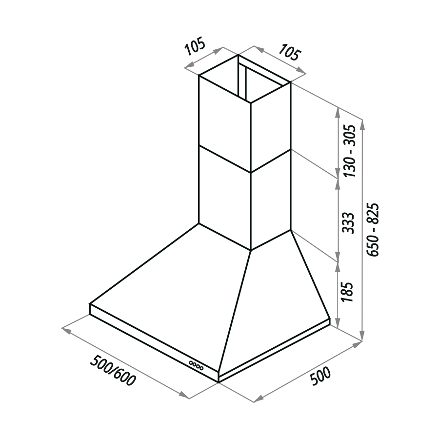 - Дополнительная информация Конструкция купольная, монтаж настенный, управление механическое/кнопочное, производительность мотора 500 м³/ч, ширина 60 см