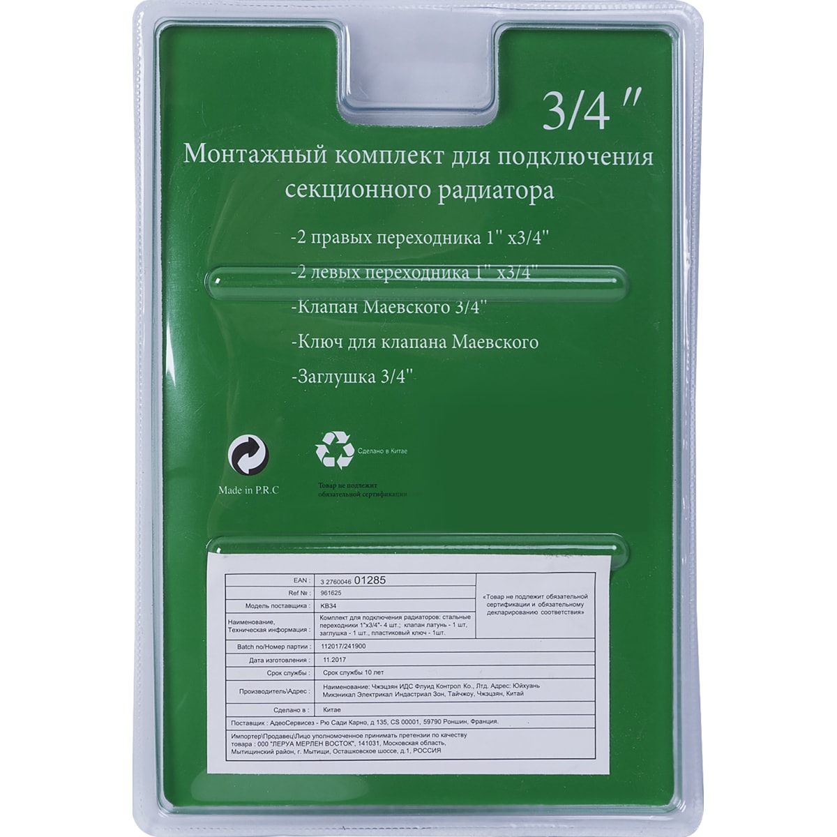 Комплект для подключения радиатора R08, 1"х3/4"