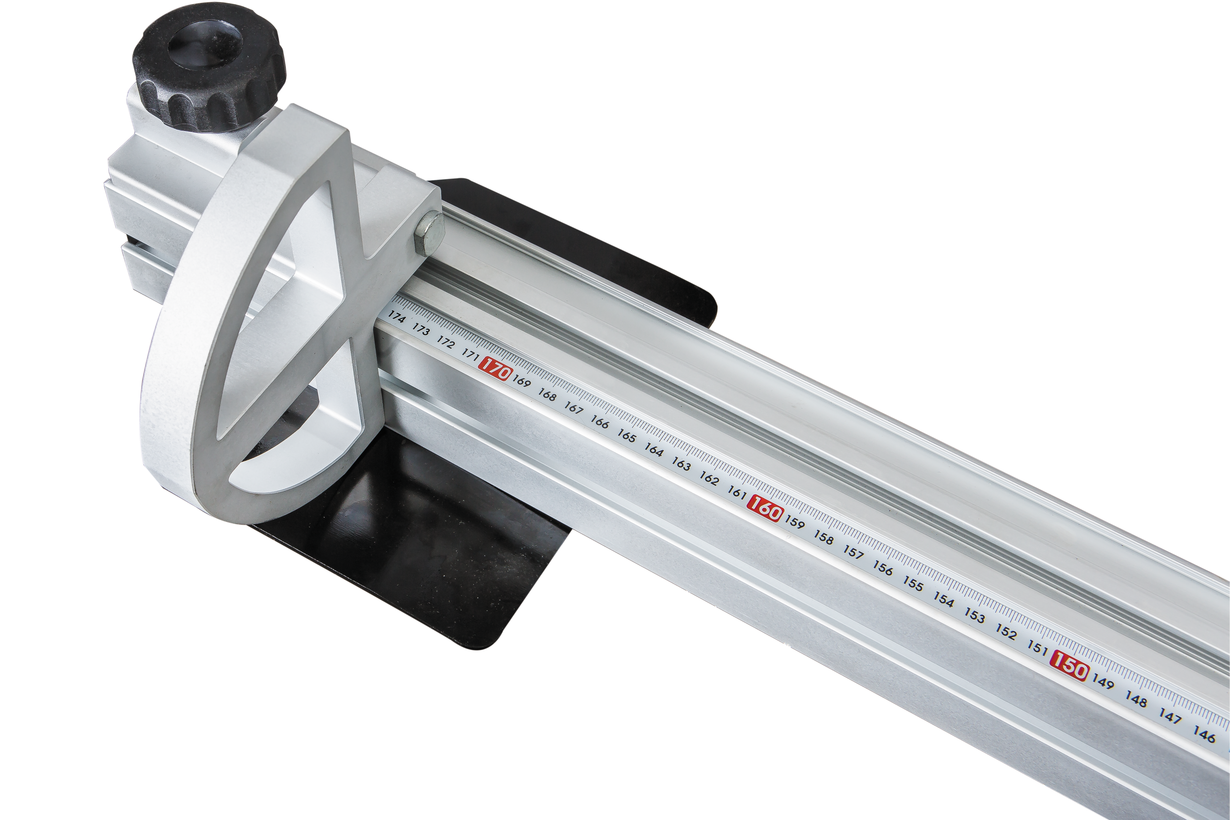 Посредством модернизированного упора, дополненного цилиндрической направляющей, осуществляется перемещение болванок. Эксцентриковый зажим позиционирует распиливаемый предмет на опоре. Разметка позволит оперативно установить параметры распила и соблюдать точность при выполнении разнообразных операций.