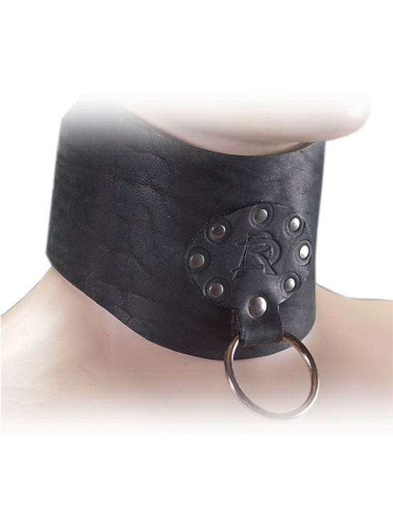 Кожаный ошейник-стойка с кольцом Подиум - чёрный