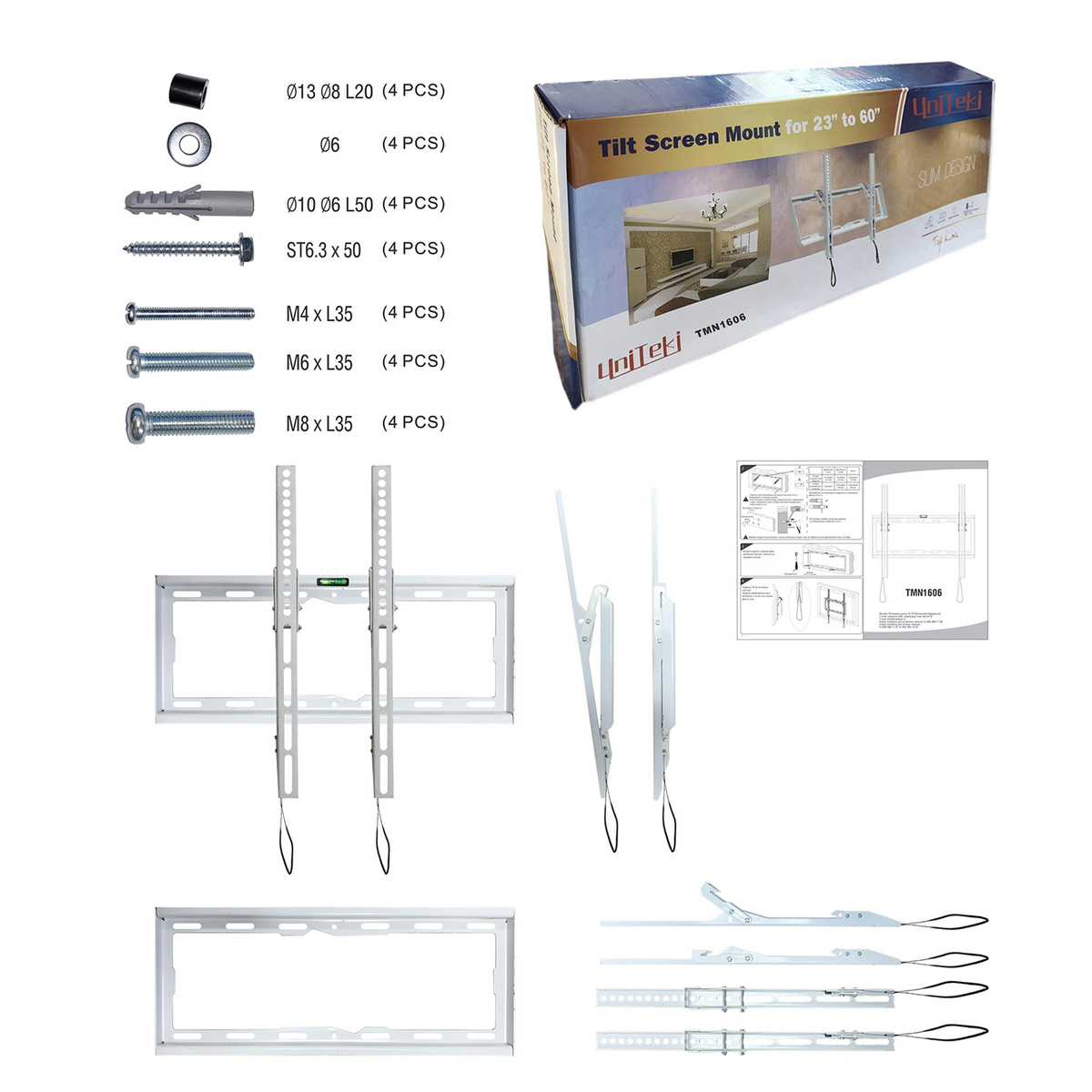 Uniteki TMN1606 белый крепление настенное наклонное кронштейн на стену наклонный быстросъемный для телевизора диагональ 23 до 60 дюймов