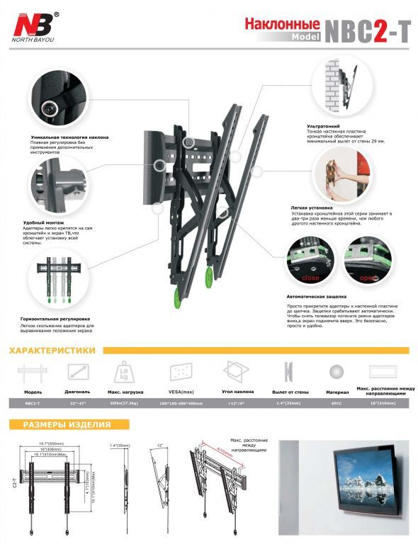 North Bayou NB C2-T черный наклонный быстросъемный кронштейн на стену ПРЕМИУМ класса для телевизора диагональ 32-55"