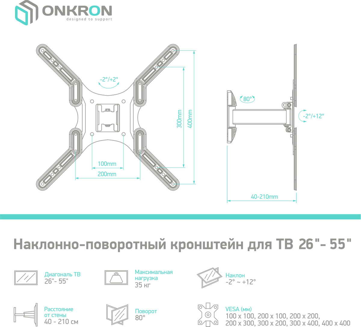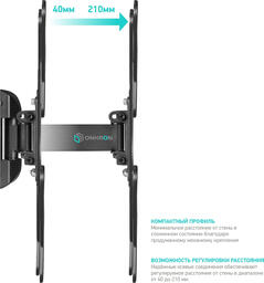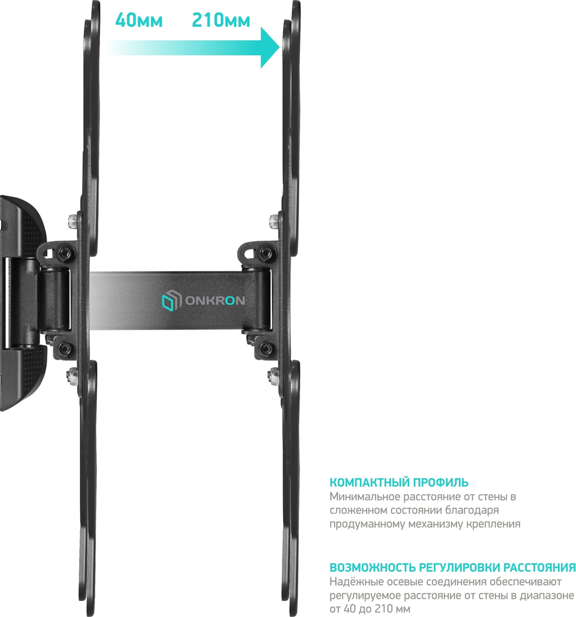 ONKRON наклонно-поворотный кронштейн для ТВ 26"-55", черный NP44
