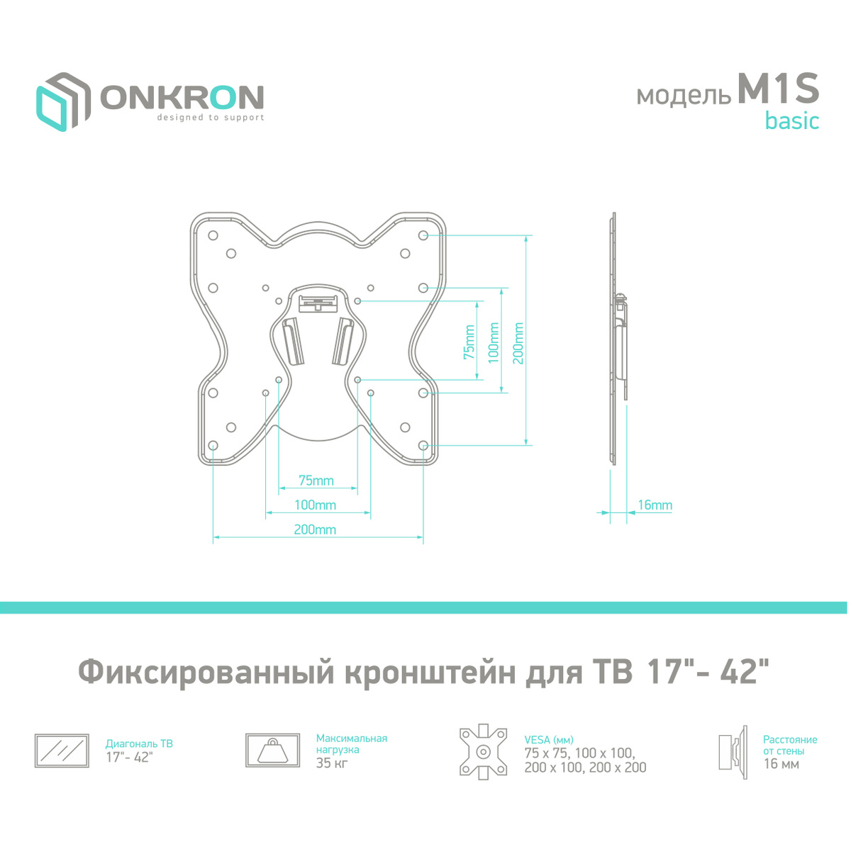 - Макс. расстояние от стены, мм 16
