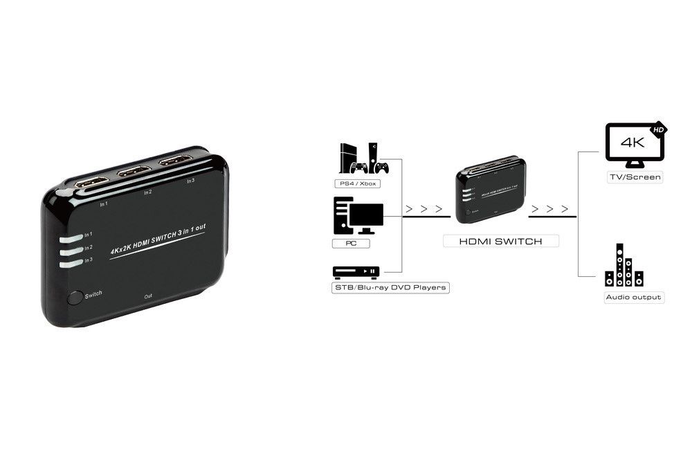 GCR переключатель HDMI 3 к 1 4Kx2K 30Hz коммутатор свитч switch hdmi