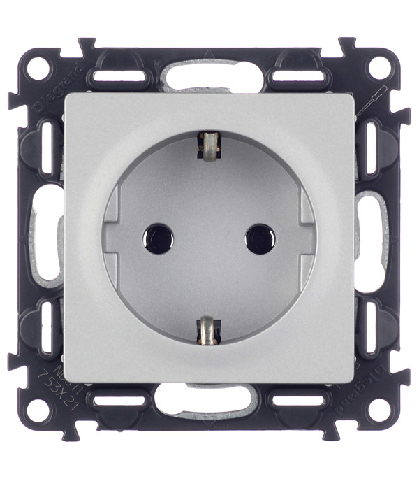 Розетка Legrand Valena LIFE 753621 скрытая установка алюминий с заземлением