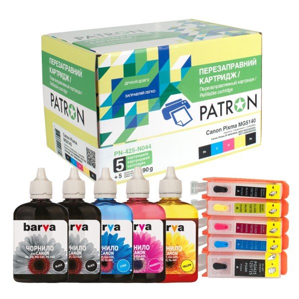 Картриджи перезаправляемые PATRON для CANON PIXMA MG5140, Комплект 5 шт + чернила, PN-425-N044 (CIR-PN-CPGI425C-044)
