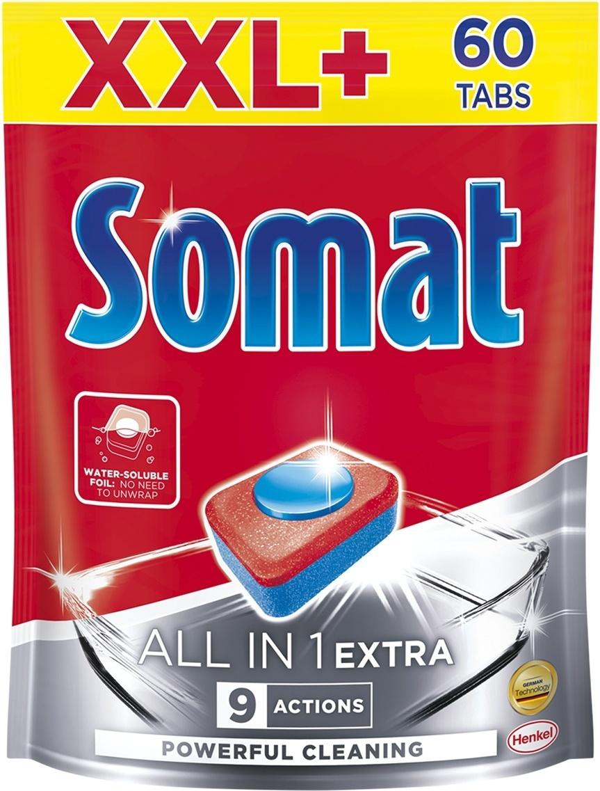Средство для мытья посуды в посудомоечной машине Таблетки Somat All-in-1 Extra, 60 шт