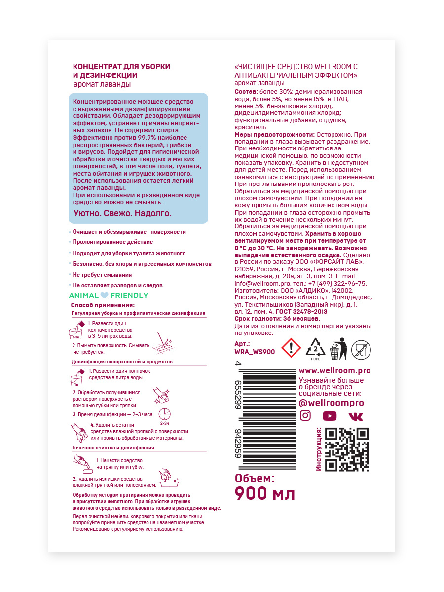 Средство для уборки за животными Wellroom дезинфицирующее , концентрат