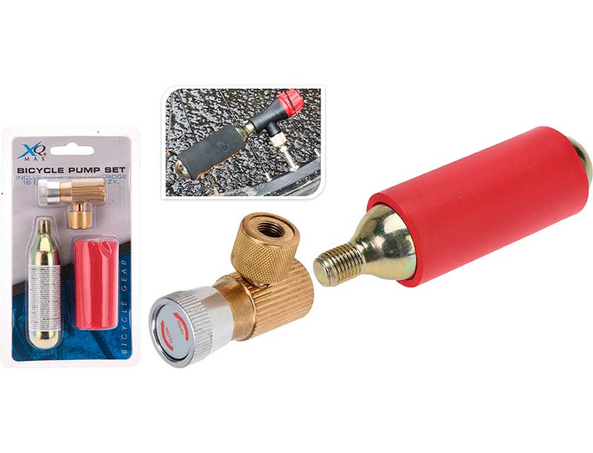 Предназначен для велосипеда. Материал - сталь. В комплекте 1 картридж 16 г, насос, клапан. Вес комплекта - 84 г.