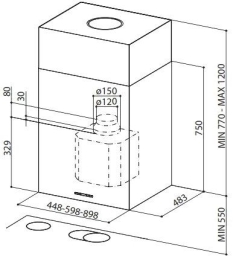 - Диаметр выходного отверстия 120/150 мм