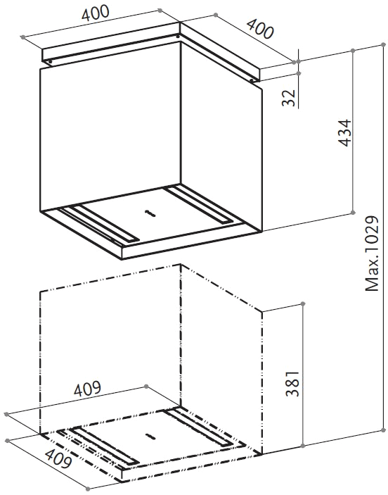 - Глубина 40 см