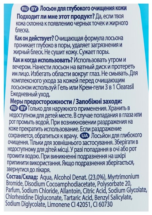 - Способ применения нанести лосьон на ватный диск и протереть им лицо; избегать области вокруг глаз; не смывать