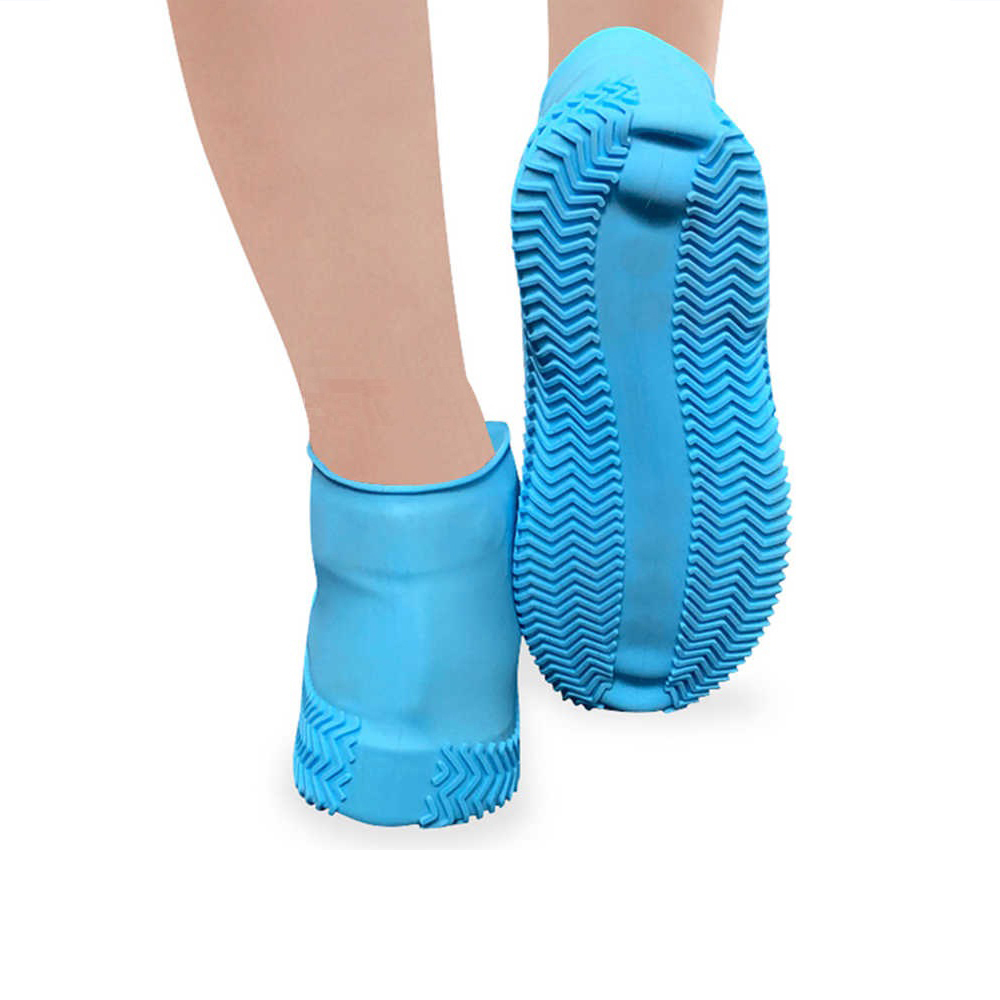 Водонепроницаемые бахилы от дождя Waterproof Silicone Shoe Cover (синие, размер L)