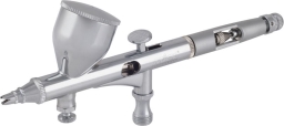Аэрограф двойного действия предназначен для нанесения рисунков и узоров на различные поверхности. Помимо самого изделия, в комплект входят: ключ, штуцер, мерная пипетка.
