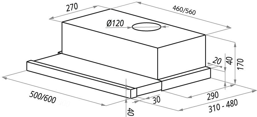 • Диаметр выходного отверстия 120 мм