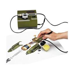 Немецкая комплексная установка PROXXON состоящая из малогабаритного компрессора МК240 и аэрографа АВ100 предназначена для нанесения рисунков на различные поверхности, ретуши фотоснимков, художественной росписи и моделизма. Укомплектована шлангом длиной 20 см для подключения аэрографа к компрессору и набором емкостей для краски.