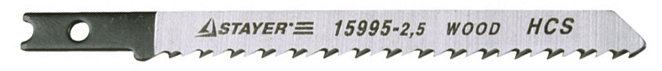 Пилки STAYER 15995-2.5_z01 (Profi) Используются по дереву, ДСП, ДВП Особенности: Изготовлены из высокоуглеродистой быстрорежущей стали Шаг зубьев: 2,5 мм