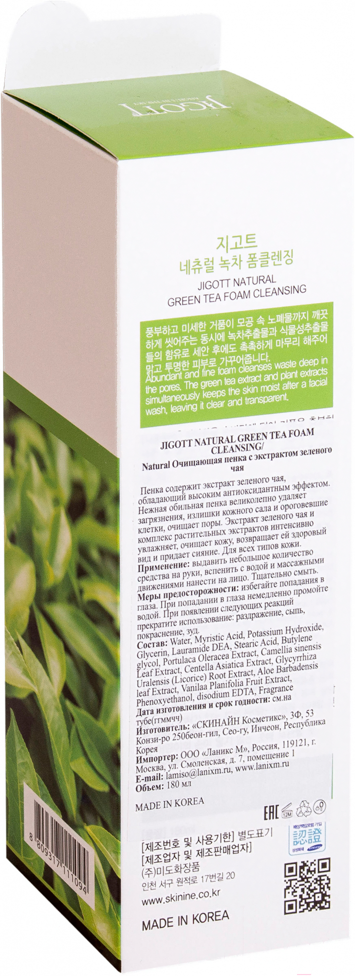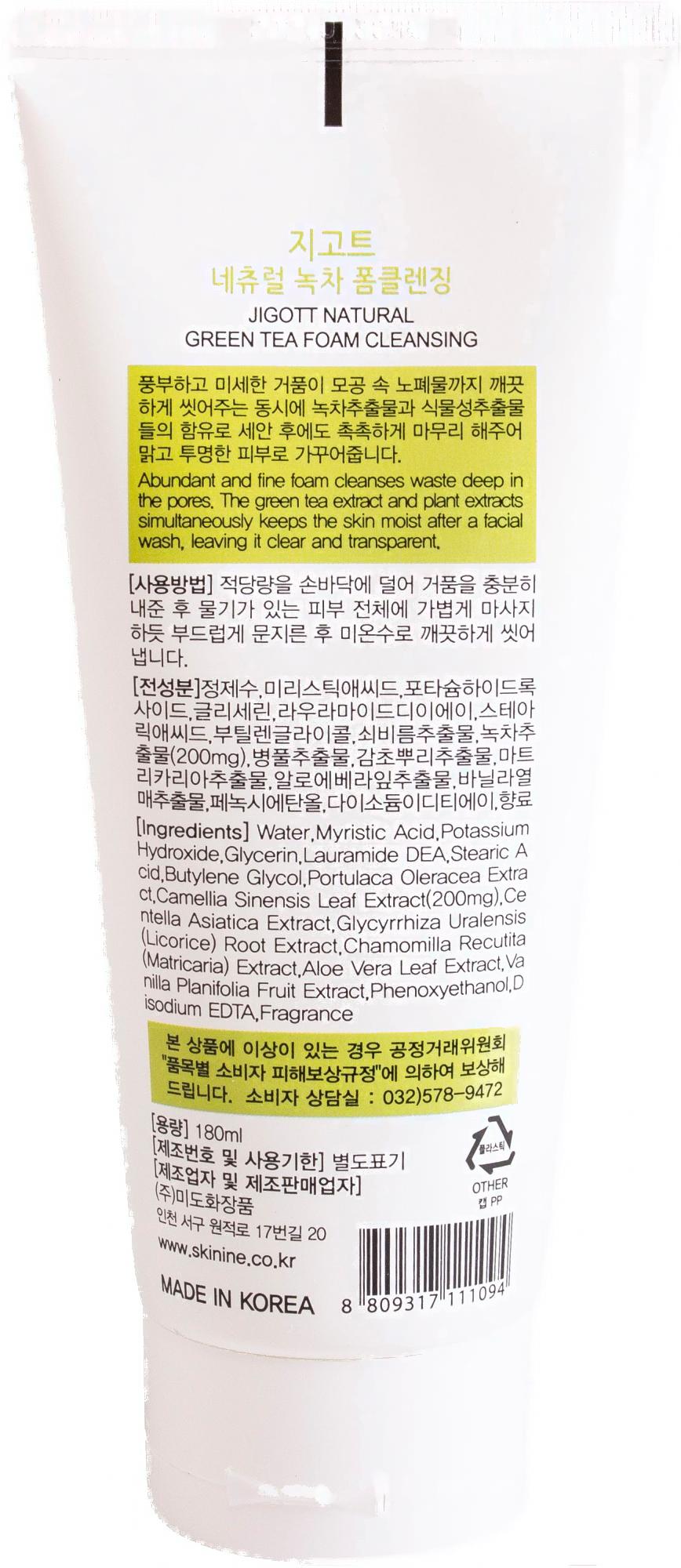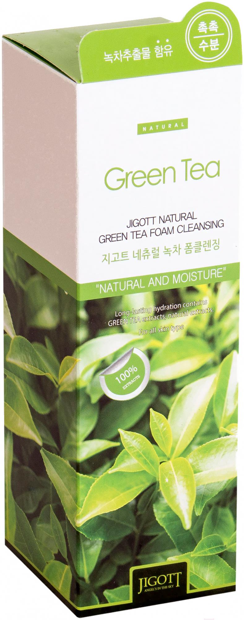 Пенка для умывания Jigott Natural очищающая пенка с экстрактом зеленого чая (180мл)