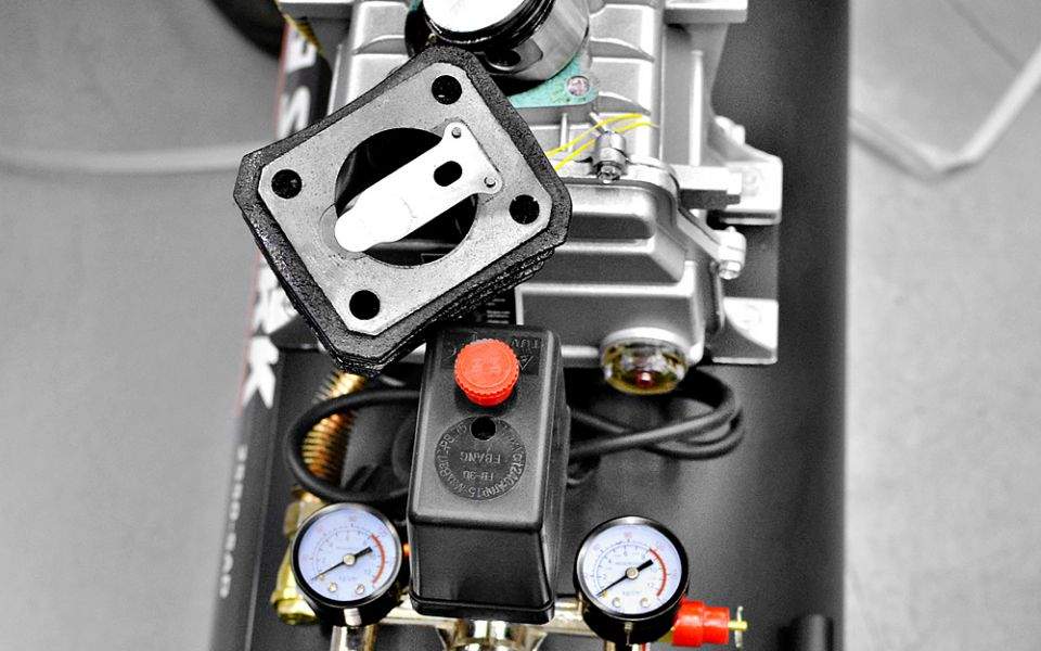 Это компрессорная головка, благодаря которой и происходит получение сжатого воздуха. В компрессоре Stark 2550-SAD головка поршневого типа одноступенчатая с одним цилиндром.
