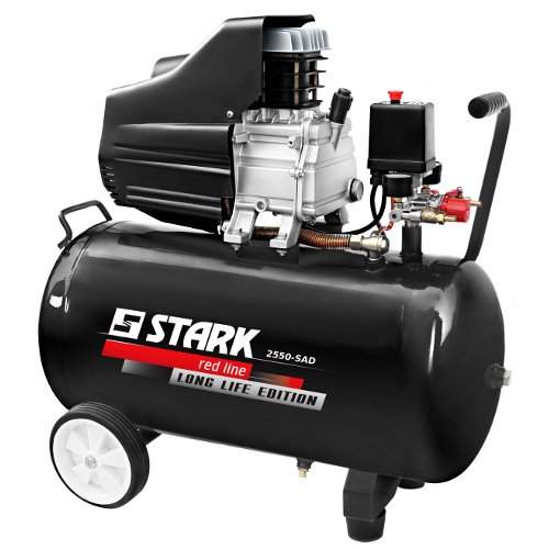 Компрессор Stark 2550-SAD это масляный, поршневой агрегат для работы с пневмоинструментами, требующими подачи сжатого воздуха. Бытовой аппарат с увеличенным объемом бака-рессивера. Воздушный компрессор предназначен для нанесения лаков, красок, грунтовки, то есть, всего того, что требуется при покраске автомобиля. Нанесение антикоррозийных составов в любые, даже самые недоступные места, еще одно применение компрессора. Также агрегат используется в работе с полировальными или шлифовальными инструментами, или гайковертом.