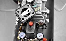 Ресивер, то есть баллон для сжатого воздуха, вмещает в себя 50 литров. Казалось бы, это говорит о большей производительности, но не только это влияет на продуктивность агрегата. Все детали и механизмы, так или иначе, способствуют повышению работоспособности и качественной работе агрегата. Ресивер имеет штуцер для установки пневматической аппаратуры, которая в свою очередь связывает вместе пневмоаккумулятор и компрессорную головку. Сливной клапан предназначен для слива конденсата, который постоянно накапливается в процессе работы ресивера. Сливать конденсат надо при отключенном двигателе. Реле давления контролирует уровень давления в баке-ресивере. Пневматическая аппаратура состоит из системы воздухопроводов и клапанов. Один воздухопровод (нагнетательный) подает сжатый воздух от головки к пневматическому аккумулятору, другой (разгрузочный) сбрасывает сжатый воздух, в случае необходимости, например во время остановки. Обратный клапан препятствует возврату воздуха в обратном направлении.