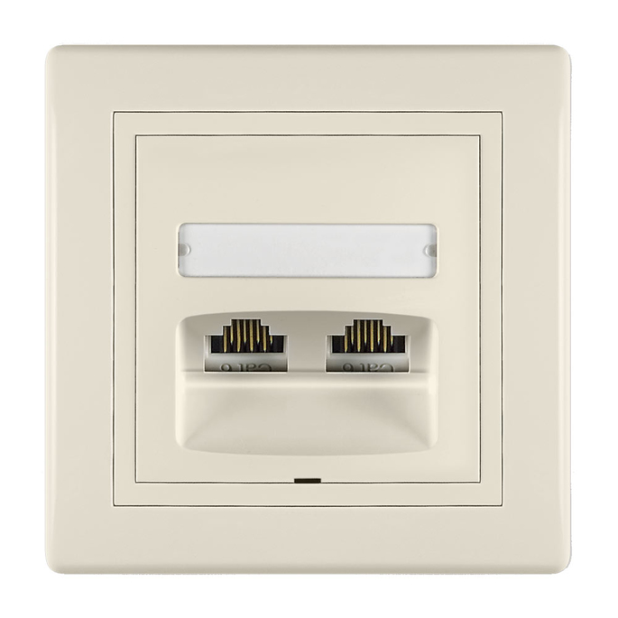 Розетка коммуникационная двойная с Keystone модулями RJ45 Cat 6 UTP, бежевая