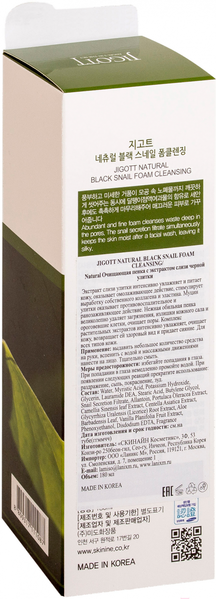 Пенка для умывания Jigott Natural очищающая с экстрактом слизи черной улитки (180мл)
