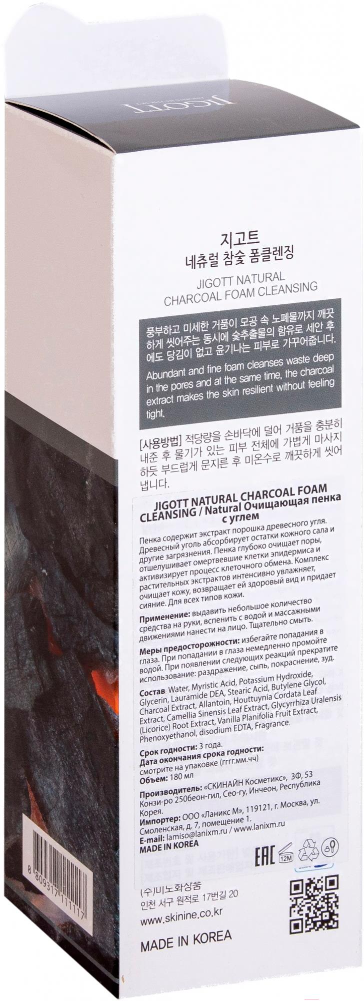 Пенка для умывания Jigott Natural очищающая с углем (180мл)