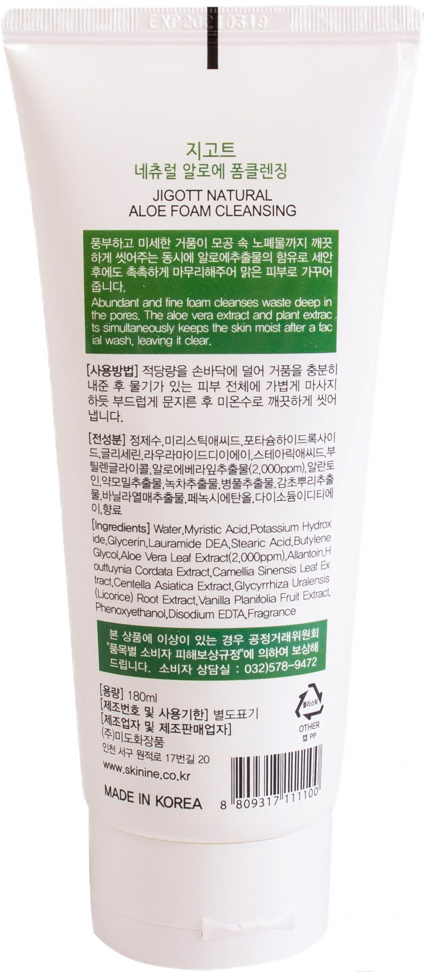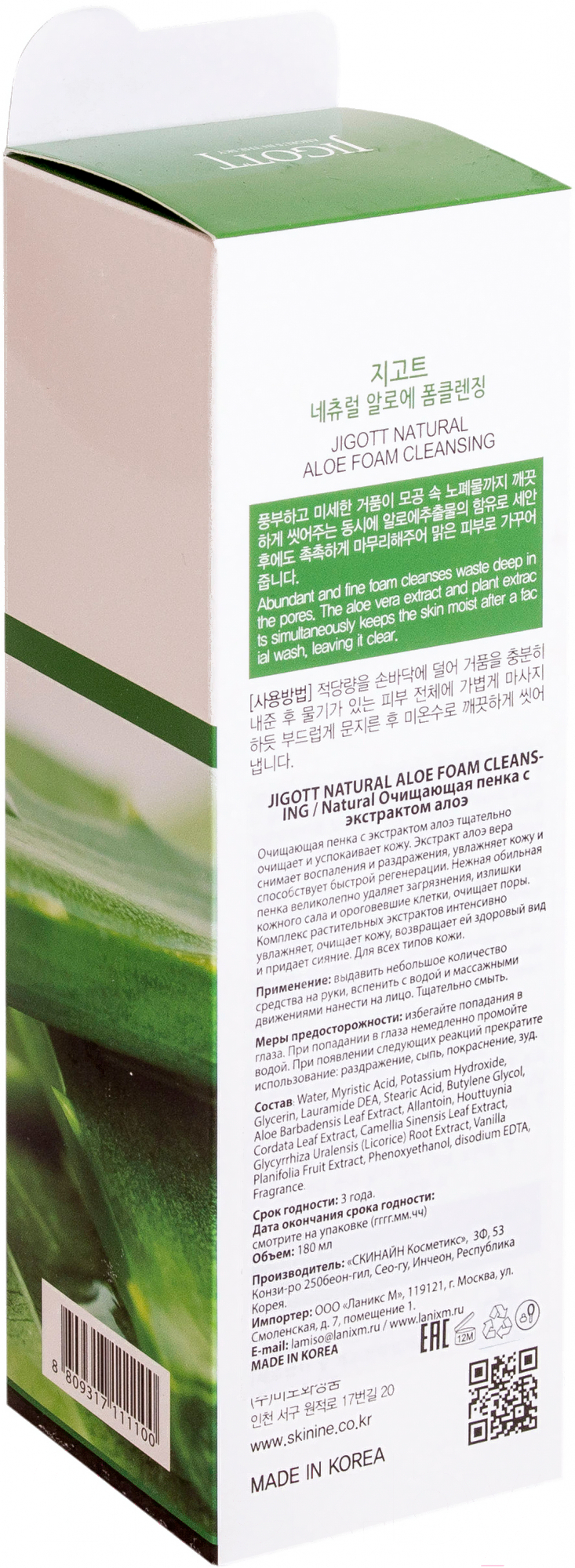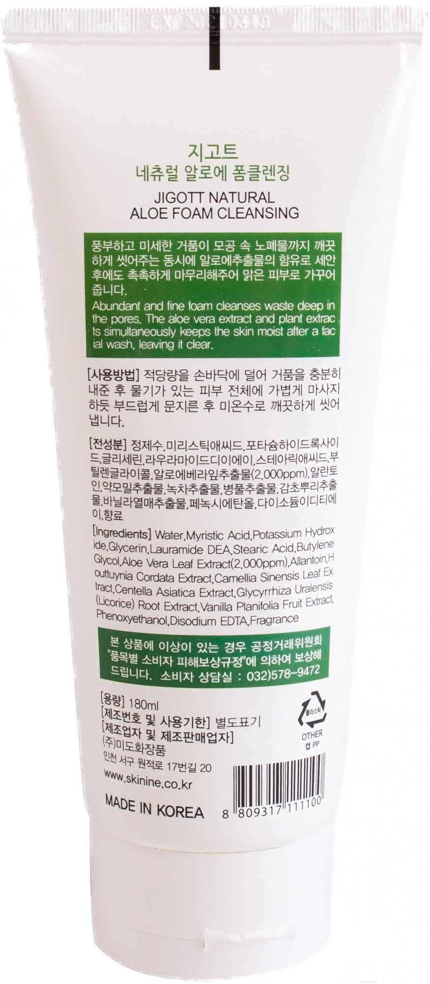 Пенка для умывания Jigott Natural очищающая с алоэ (180мл)
