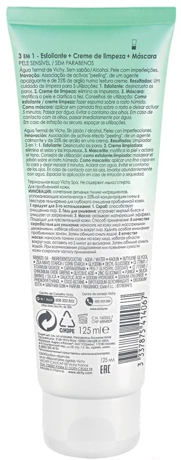 • Состав Aqua/water, Kaolin, Butylene Glycol, Zea Mays Starch / Corn Starch, Glycerin, Decyl Glucoside, Ci 77891 / Titanium Dioxide, Carrageenan, Peg-7 Glyceryl Cocoate, Ci 77288 / Chromium Oxide Greens, Glycolic Acid, Sodium Hydroxide, Sodium Chloride