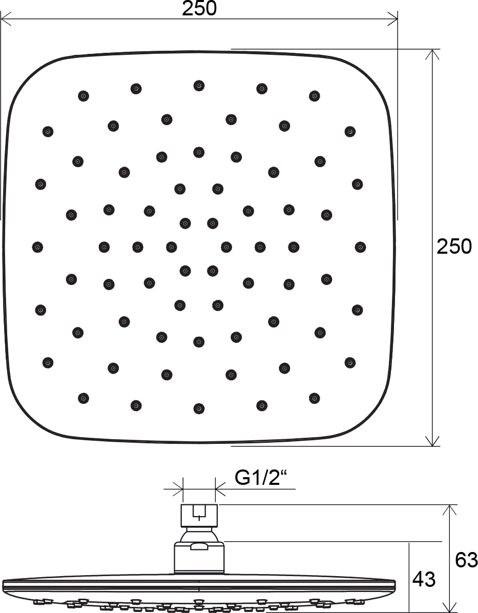 - Размер верхнего душа, мм 250