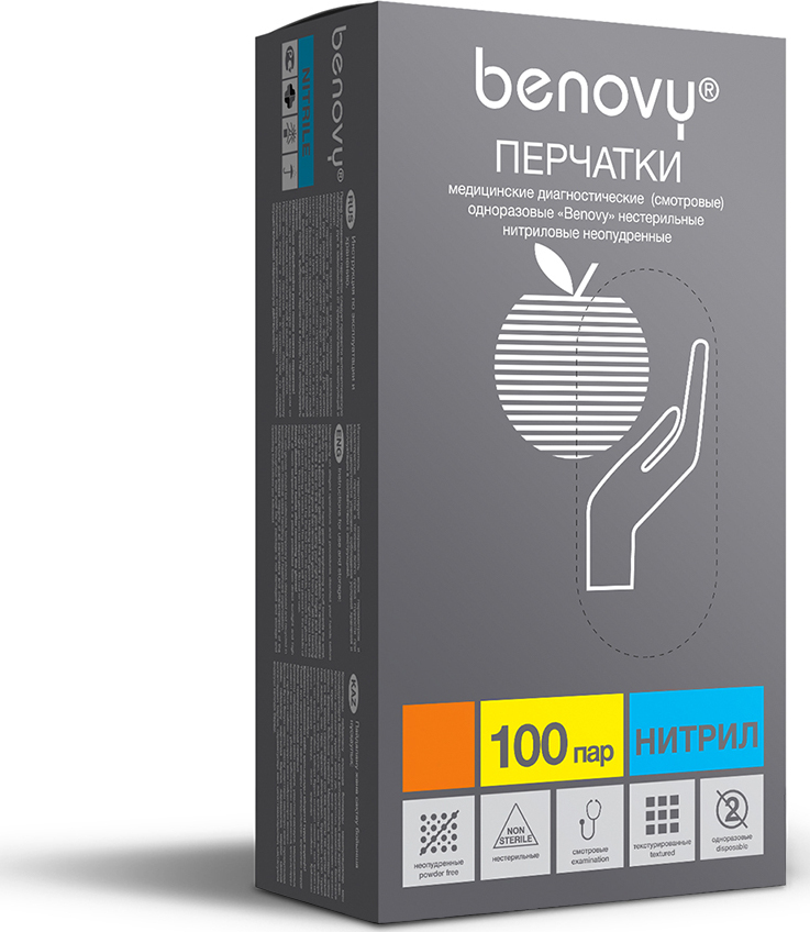 Перчатки медицинские Benovy, голубые, нитриловые, высокочувствительные, 100 пар в упаковке