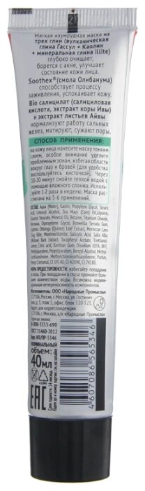- Состав aqua (water), kaolin, propylene glycol, stearic acid, cetearyl alcohol, zea mays (corn) oil,glycerin, glyceryl stearate, mineral oil, betaine, titanium dioxide, beeswax, dipropylene glycol, boswellia serrata gum, cydonia oblonga (quince) leaf extract, moroccan lava clay, illite, montmorillonite, salicylic acid, salix alba (willow) bark extract, tocopheryl acetate, triethanolamine, citric acid, xanthan gum, disodium edta, внт, methylparaben, propylparaben, benzyl alcohol, methylisothiazolinone, methylchloroisothiazolinone, parfum, hexyl cinnamal, ci 19140, ci 42090, сi 74180