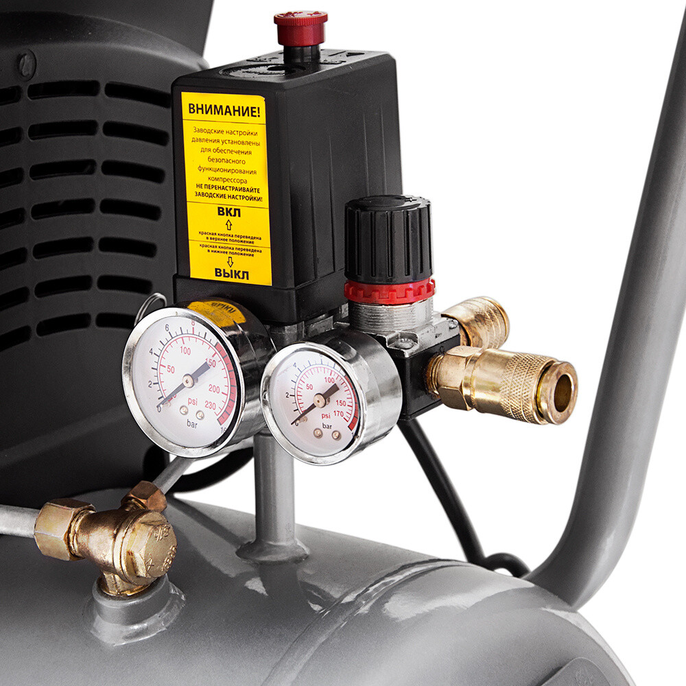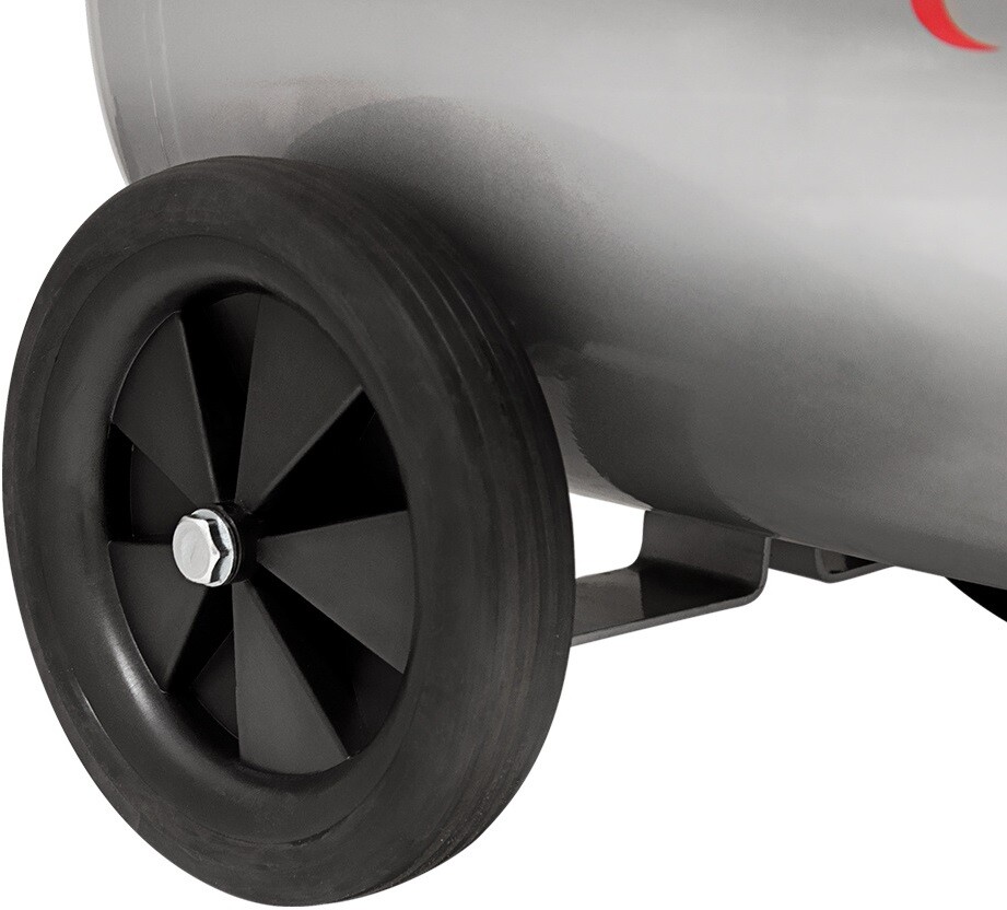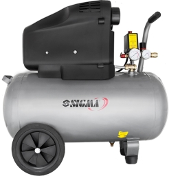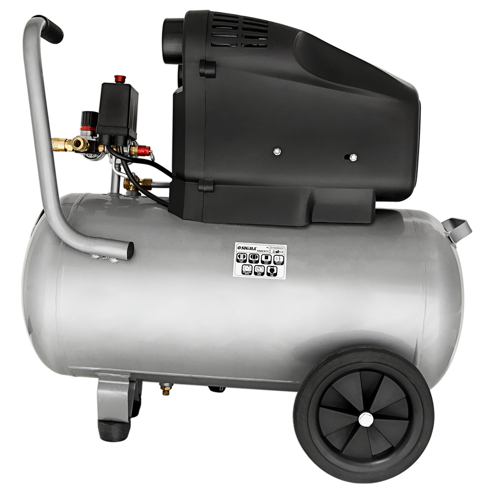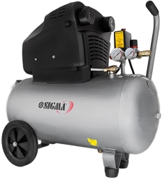 Безмасляный компрессор Sigma 7042311 может быть использован как в быту, так и на небольшой СТО. Мощный электродвигатель справляется с покраской поверхностей, подкачкой шин, продувкой труб. Оборудование используется для приведения в действие пневматического инструмента. Конструкция оснащена колесами для удобного и легкого перемещения. Устойчивость обеспечивают две ножки с резиновыми накладками, что позволяет устанавливать оборудование на любой поверхности.
