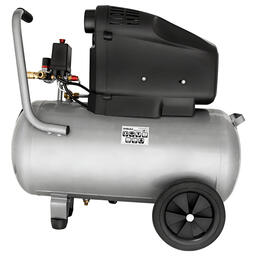 ресивер на 50 л изготовлен из высокопрочного материала и обработан антикоррозийной краской, а для слива конденсата оснащен пробкой;