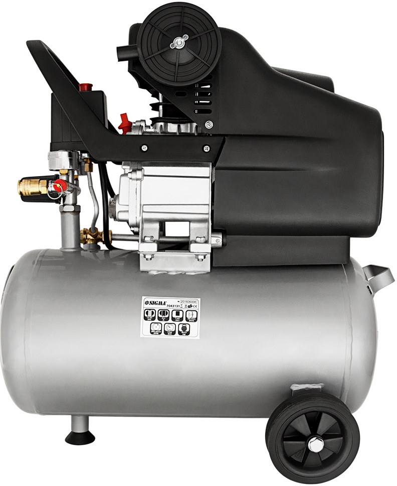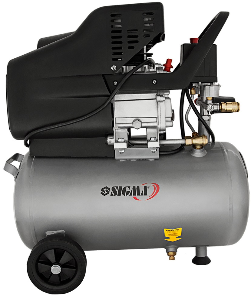 Небольшой компрессор Sigma 7043131 идеально подходит для работы в домашних условиях. Благодаря давлению 8 бар и хорошей производительности 230 л/мин можно привести в действие пневматический инструмент. Устройство будет полезным во время стройки, ремонта, для продувки трубопровода и т.п. Загрязнение и повреждение электромотора предотвращает специально установленный кожух. Перфорация в нем обеспечивает постоянный приток воздуха с целью охлаждения.