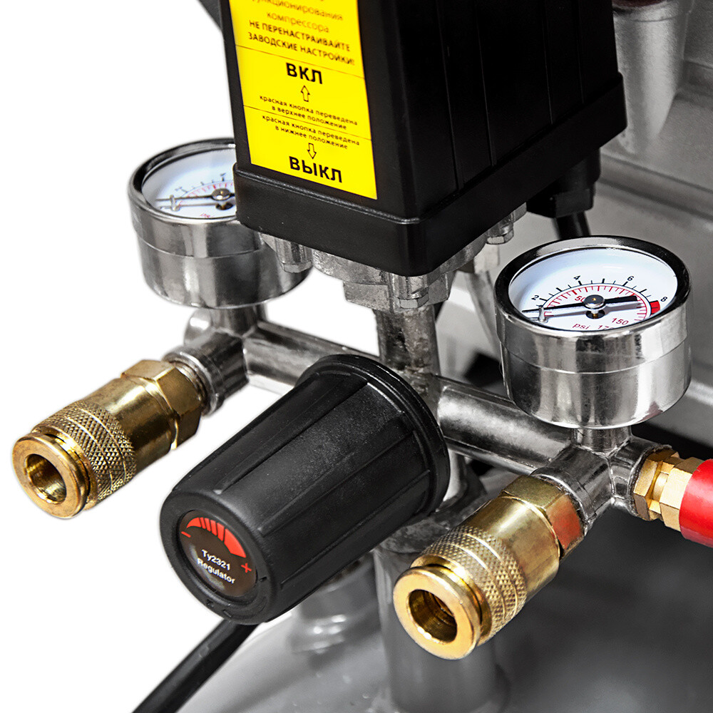 для контроля давления на выходе и в накопительном баке предусмотрено два манометра;