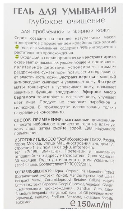 - Состав aqua, organic iris extract (органический экстракт ириса), mentha piperita extract (экстракт мяты), cocamidopropyl betaine, calluna vulgaris extract (экстракт вереска), decyl glucoside, glycerin, xanthan gum, citrus bergamia essential oil (масло бергамота) perfume, sodium benzoate, potassium sorbate, sorbic acid