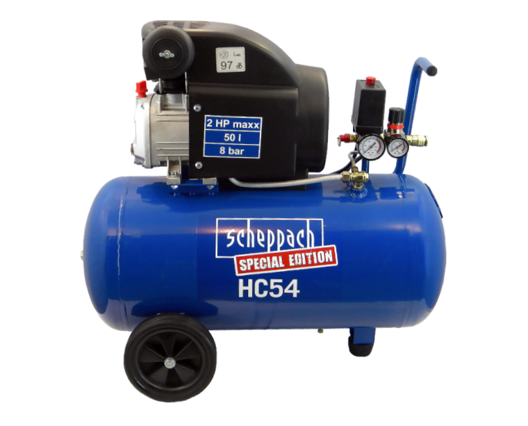 Scheppach HC54 - воздушный компрессор, относящийся к типу поршневых с прямым приводом. Разработан как для любителей, так и полупрофессиональных пользователей. Совмещает безопасность и надежность с непревзойденным соотношением цены и качества. Применяется для работы с большинством пневмоинструментов. Компрессор SCHEPPACH HC 54 приводится в действие двигателем мощностью 1кВт (1,5 кВт - максимальное значение параметра). Работает от электросети с напряжением 230В и частотой 50Гц.
