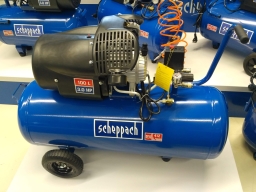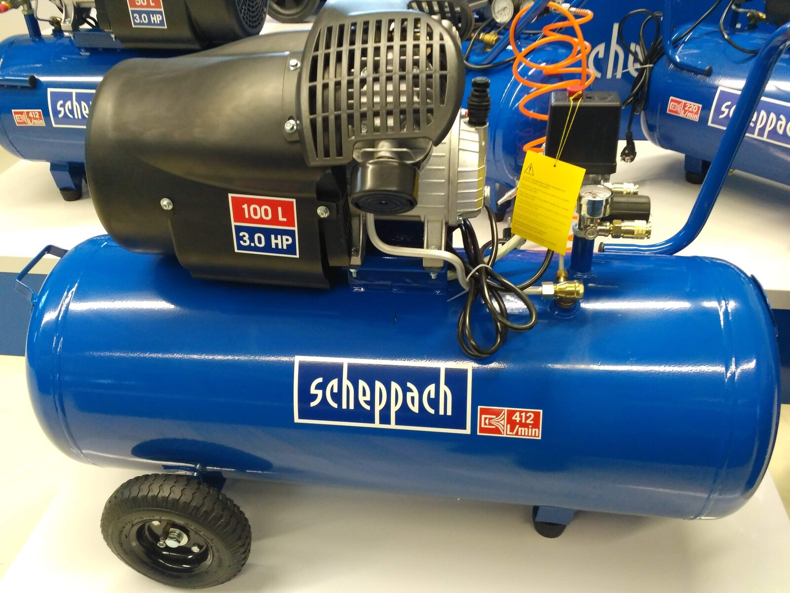 Компрессорная установка серии HC 100 dc от немецкого производителя строительного оборудования, техники и электроинструмента Scheppach является самым мощным агрегатом в линейке воздухонагнетательных устройств.