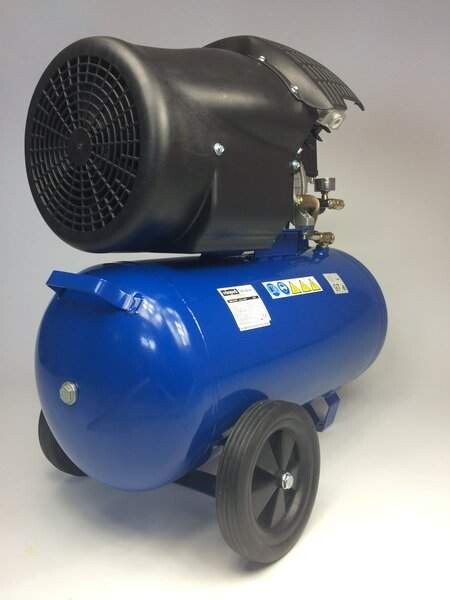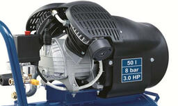 50 литровый бак обеспечивает длительную работу пневмоинструментов в кратковременном режиме. Горизонтальное расположение бака для наполнения воздуха способствует лучшей балансировке агрегата и хорошей наполняемости ресивера. Постепенно в баке сжатого воздуха накапливается конденсат, отчего возможна некоторая потеря мощности. Для слива жидкости из бака внизу конструкции находится сливное отверстие, которое позволяет оператору быстро слить конденсат.