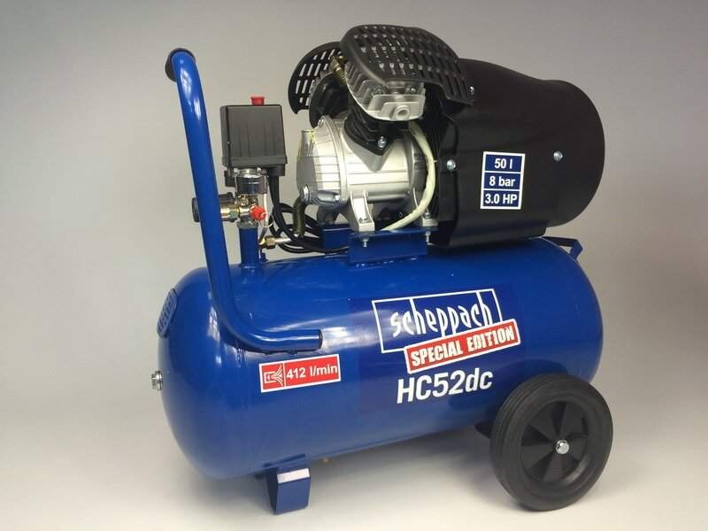 Компрессор Scheppach HC 52 dc новейшая разработка в ряду полупрофессиональных компрессоров. С его помощью в ремонтной мастерской можно распылить краску или лак, нанести грунтовку, продуть труднодоступные места, жиклер, накачать шины. Практически, любая работа по дому во время ремонта не может обойтись без этого агрегата. Ведь подключение пневмоинструментов в разы увеличивает производительность, чем и обусловлена их такая возрастающая популярность.