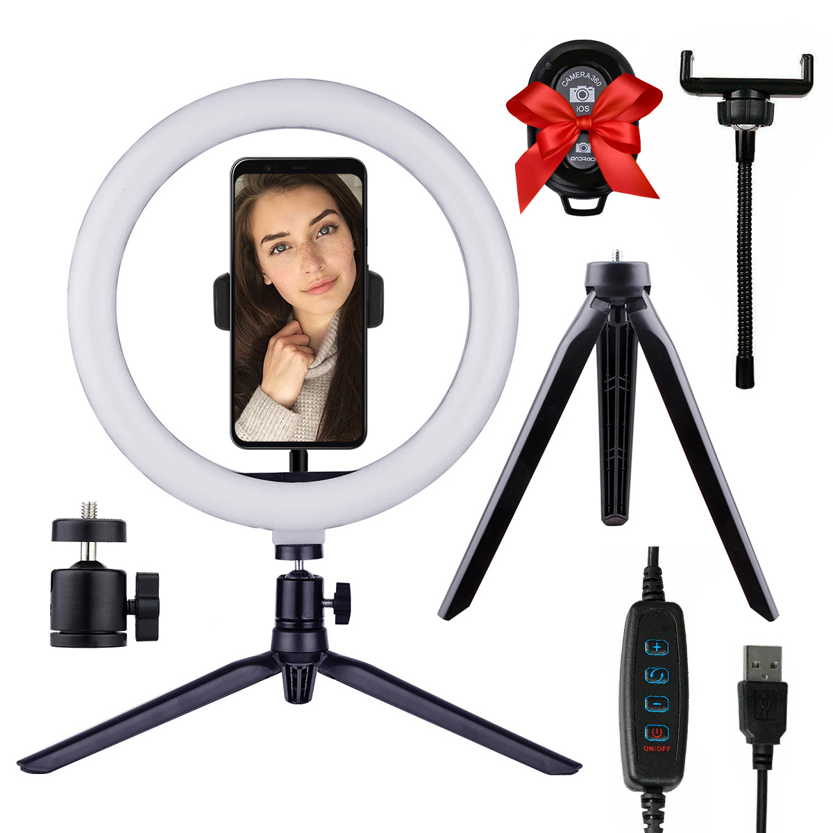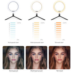 Кольцевая светодиодная лампа Goodly LED RING 26 см с Bluetooth пультом, настольным штативом, держателем для телефона для профессиональной съемки