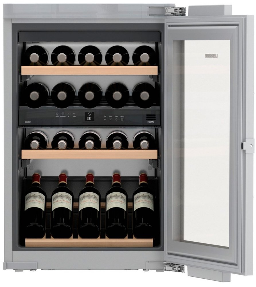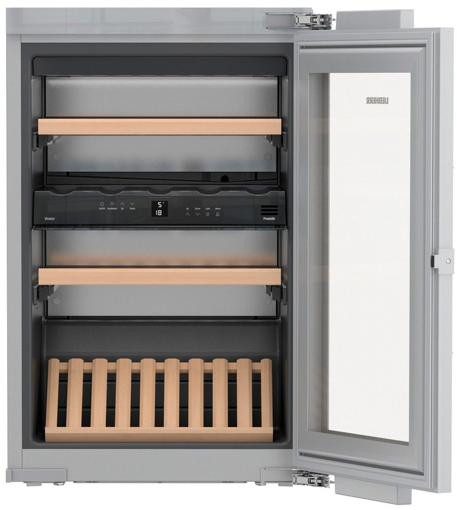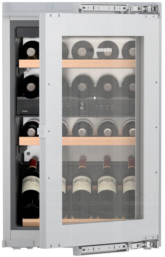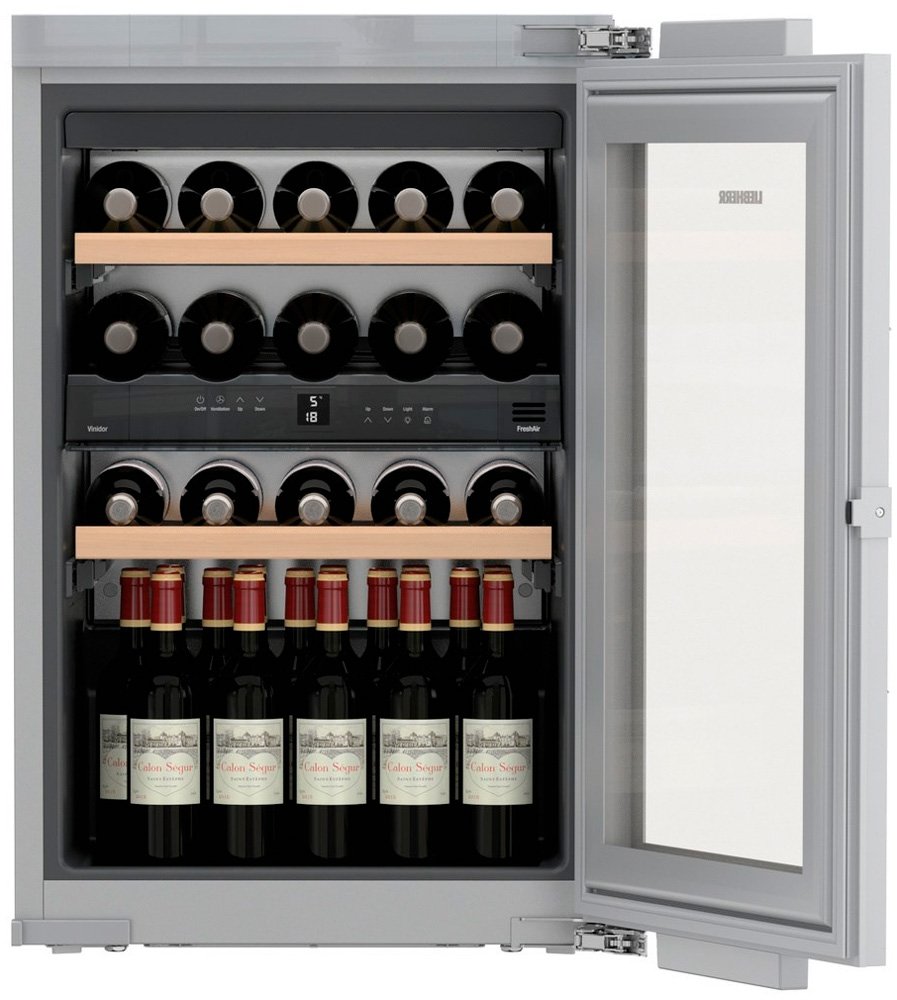 ДополнительноLiebherr EWTdf 1653 Vinidor — встраиваемый винный шкаф с сенсорным управлением. Рабочая камера модели поделена на две независимые зоны, в каждой из которых можно установить температуру в диапазоне от +5 °С до +20 °С. Фильтр из активированного угля FreshAir гарантирует превосходное качество воздуха по всему объему внутреннего пространства прибора. Ключевые особенности: Циркуляционное охлаждение. Дверной доводчик SoftSystem. Функция защиты от детей.Количество бутылок 30 шт. Количество полок 4шт.