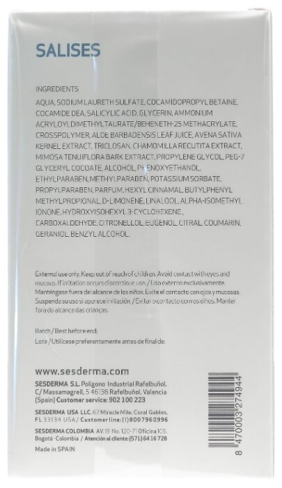 • Состав aqua, sodium laureth sulfate, cocamidopropyl betaine, cocamide dea, salicylic acid, glycerin. ammonium, acryloyldimethyltaurate/beheneth-25 methacrylate, crosspolymer, aloe barbadensis leaf juice, avena sativa kernel extract, triclosan, chamomilla recutita extract, mimosa tenuiflora bark extract, propylene glycol, peg-7 glyceryl cocate, alcohol, phenoxyethanol, ethylparaben, methylparaben, potassium sorbate, propylparabene, parfum, hexyl cinnamal, butylphenyl methylpropional, d-limonene, linalool, alpha-isomethyl ionone, hydroxyisohexyl 3-cyclohexene, carboxaldehyde, citronellol, eugoenol, citral, coumarin, geraniol, benzyl alcohol
