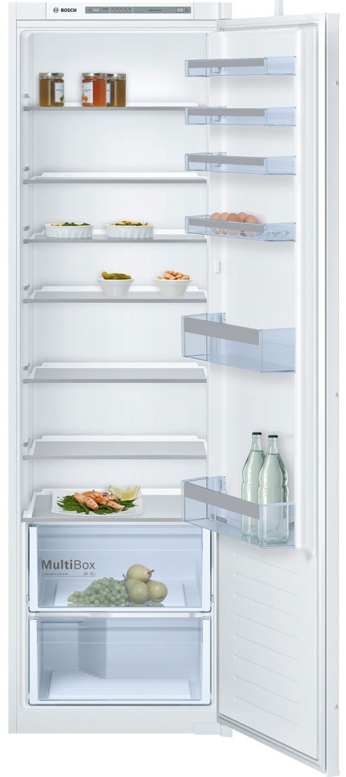 - Дополнительно Встраиваемый однокамерный холодильник Bosch KIR81AF20R — удобная модель с вместительными полками и ящиками для овощей и фруктов. Система автоматического размораживания облегчает использование холодильника. Ящики имеют рифленую поверхность, которая защищает фрукты и овощи от конденсата. Выдвижные полки EasyAccess выполнены из ударопрочного закаленного стекла, их можно выдвигать для удобной загрузки и разгрузки. Система VitaControl поддерживает постоянную температуру в холодильной камере.